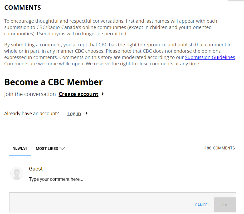 CBC news article comments web scraping