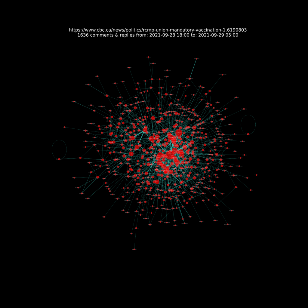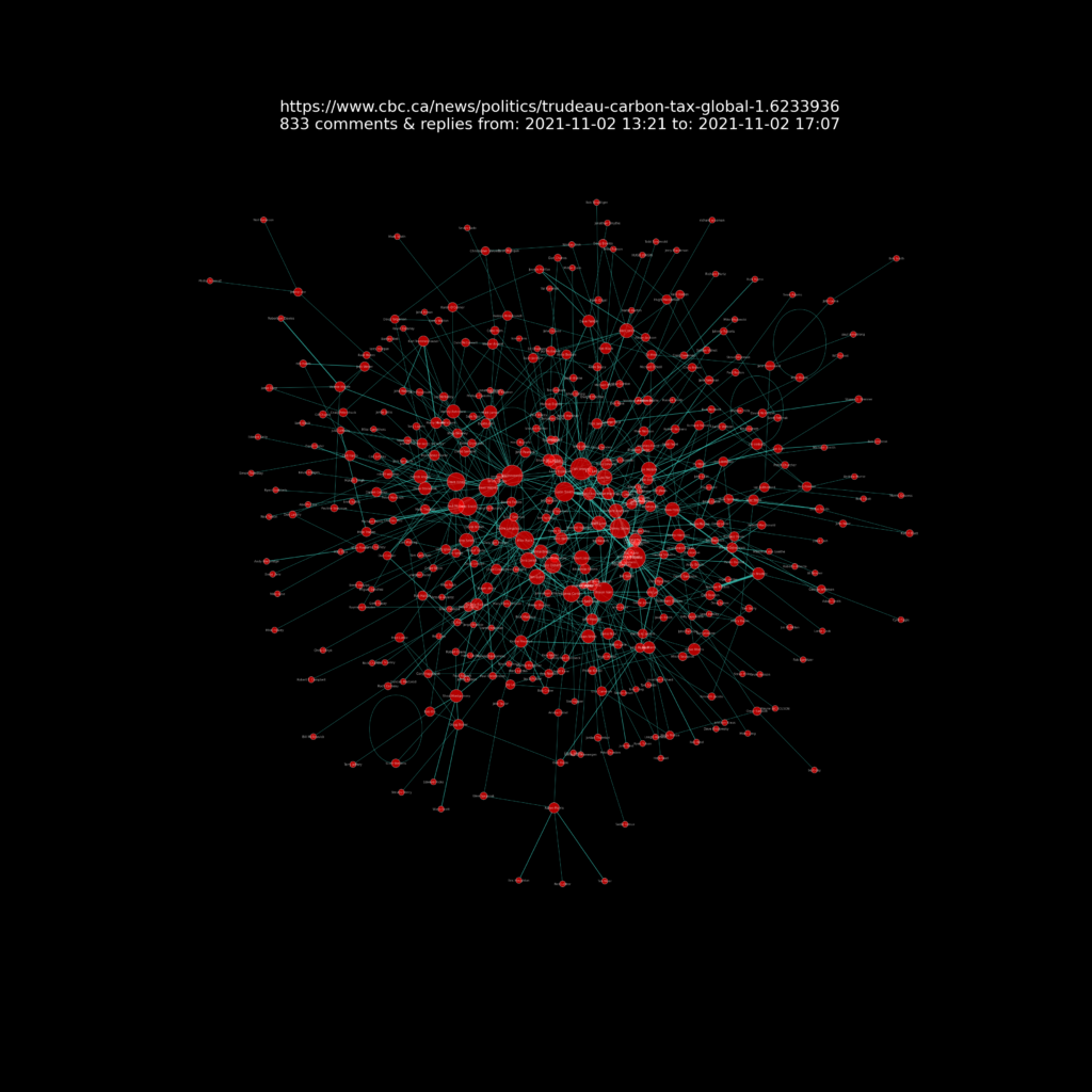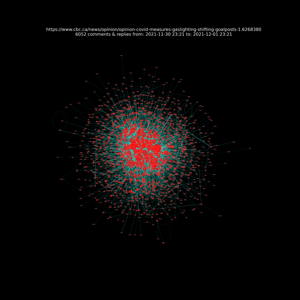 A presentation of the resulting network charts for each article I analysed can be seen at this Github repository web page https://sitrucp.github.io/cbc_comments/image_grid.html.