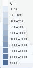 n: 156 classBreaks: (10) [1, 50, 100, 250, 500, 1000, 2000, 3000, 6000, 9000] colorHex: (2) [“#deebf7”, “#08306b”] regionColor: #a9bcd4